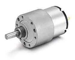 Motor DC com caixa de redução para diminuir a velocidade e aumentar torque.