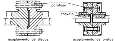 Fixo de discos ou pratos: Empregado na transmissão de grandes potências em casos especiais, como, por exemplo, nas árvores de turbinas. As superfícies de contato nesse tipo de acoplamento podem ser lisas ou dentadas.