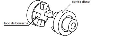Elástico perflex: Os discos de acoplamento são unidos perifericamente por uma ligação de borracha apertada por anéis de pressão e permite o jogo longitudinal de eixos.