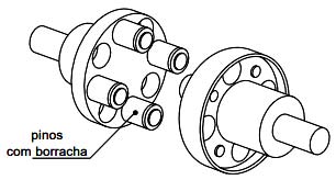 Elástico de pinos: Os elementos transmissores são pinos de aço com mangas de borracha.