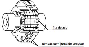 Elástico de fita de aço: Consiste de dois cubos providos de flanges ranhuradas, nos quais está montada uma grade elástica que liga os cubos. Apesar de esse acoplamento ser flexível, as árvores devem estar bem alinhadas no ato de sua instalação para que não provoquem vibrações excessivas em serviço.