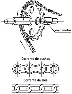 Definição: Elementos de transmissão, geralmente metálicos, constituídos de uma série de anéis ou elos. Existem vários tipos de corrente e cada tipo tem uma aplicação específica.