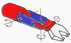 O elo de entrada possui a mesma direção do eixo de rotação, mas o elo de saída é perpendicular a este. |