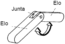 | Os elos de entrada e de saída tem a mesma direção do eixo de rotação da junta |