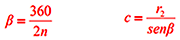 (β) ângulo, que é metade do ângulo medido entre duas ranhuras adjacentes