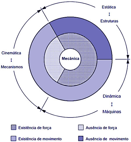 O ramo da mecânica, denominado ciência de máquinas e mecanismos, tem como objetivo estudar as leis que regem os movimentos, quer em termos de deslocamento, velocidade, aceleração e, eventualmente, impulso, dos diversos membros que constituem os sistemas mecânicos, bem como dos esforços, forças e momentos, que esses mesmos membros transmitem.
