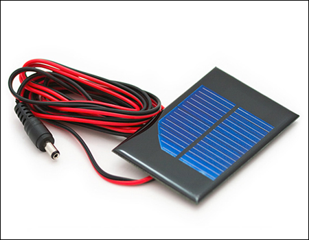 No exemplo ao lado, a célula solar possui um ivólucro protetor com terminação em plug P4 e fornece uma saída de 5v a 100mA. Outros modelos podem fornecer uma saida mais potente.