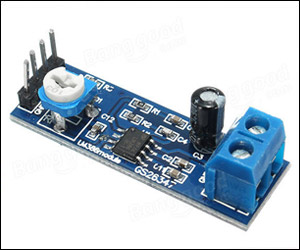 O Módulo é um pequeno circuito amplificador de som muito utilizado por projetistas que necessitam de um equipamento amplificador que converta o sinal de áudio dos seus dispositivos para serem reproduzidos junto a pequenos alto-falantes com aproximadamente 0,5W RMS. Para aumentar ainda mais a praticidade de instalação, o módulo conta com um par de bornes a parafuso para instalação de um alto-falante, sendo que a saída é do tipo mono. A energia para alimentação varia entre 4,5V a 12V DC, ou seja, se quiser utilizar a potência máxima do seu equipamento o recomendado é uma tensão de 12V.