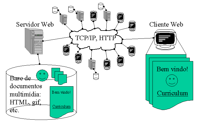 Protocolo que intermedia a relação entre os computadores que atuam como Servidores de hospedagem sites e os navegadores que utilizamos em nossos computadores ou celulares (Clientes). Neste tipo de relação, utiliza-se para estabelecer a comunicação, o procotolo o HTTP (Hypertext Transfer Protocol), que é responsável pelo tratamento dos pedidos e respostas entre Cliente e Servidor na World Wide Web ou em uma Rede Local. Nesse contexto, chamamos os servidores de Servidores Web.