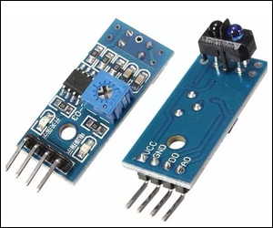 4) Encoders Ópticos (codificadores ópticos)Estes sensores se enquadram na categoria dos sensores fotoelétricos, mas possuem uma aplicação um pouco diferentes. Eles podem ser lineares ou rotatórios e ainda incrementais ou absolutos. O tipo básico rotatório incremental consiste num disco com faixas claras e escuras que tanto pode operar no modo refletivo como por transparência usando uma chave óptica.