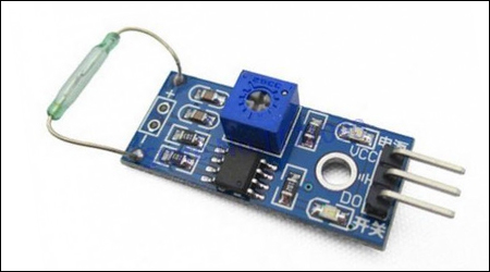 2) Sensores tipo Reed Switches (Chave Magnética)O Reed Switch é uma chave que funciona por campo magnético, fechando os contatos internos quando aproximamos um ímã do sensor. Eles atuam a partir da ação de um campo magnético. É muito utilizado em circuitos que necessitem de um sensor de proximidade sem contato, como sistemas de detecção e alarmes, mas tem uso geral em circuitos de testes e prototipação.